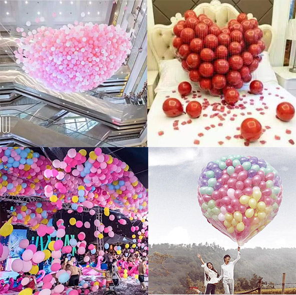 ในฉากต่าง ๆ เช่นปาร์ตี้หรือปาร์ตี้วันเกิดสามารถตั้งอวนบอลลูนได้เพื่อเพิ่มความมีชีวิตชีวาให้กับบรรยากาศเพิ่มสีความบันเทิงและส่งเสริมกิจกรรม
