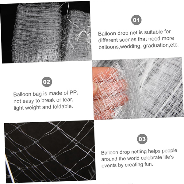 ตาข่ายบอลลูนของเราสามารถใช้สำหรับกิจกรรมการปล่อยบอลลูนทุกชนิด สำหรับปาร์ตี้วันเกิดเซอร์ไพรส์และปาร์ตี้ส่งท้ายปีเก่าคุณสามารถใช้สิ่งนี้ได้ตาข่ายบอลลูนเพื่อทำให้แขกของคุณประหลาดใจ สร้างความทรงจำที่น่าจดจำเกี่ยวกับกิจกรรมของคุณด้วยตาข่ายบอลลูนที่เชื่อถือได้นี้