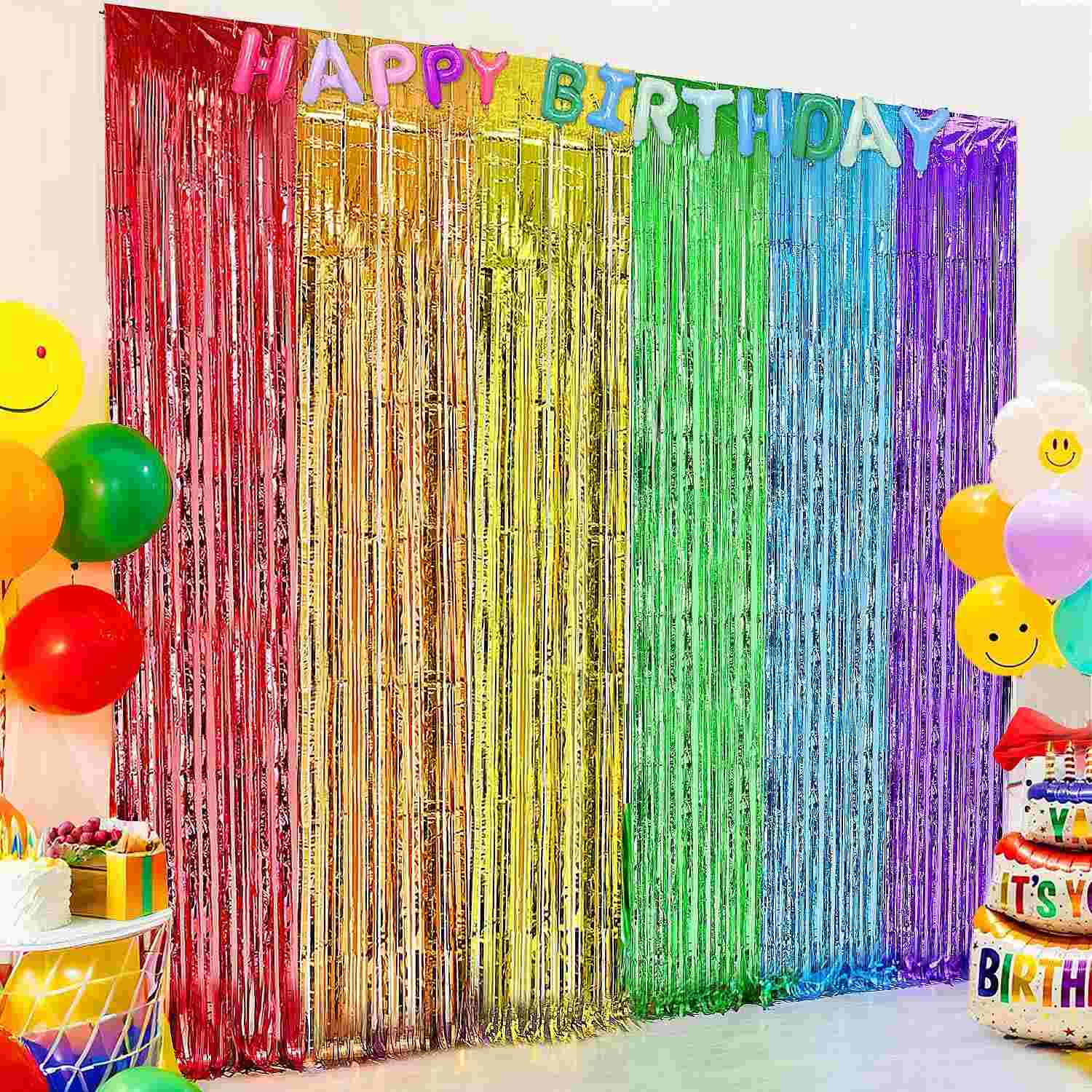 1. วันเกิดปาร์ตี้ฟอยล์ผ้าม่านฉากหลังตกแต่ง