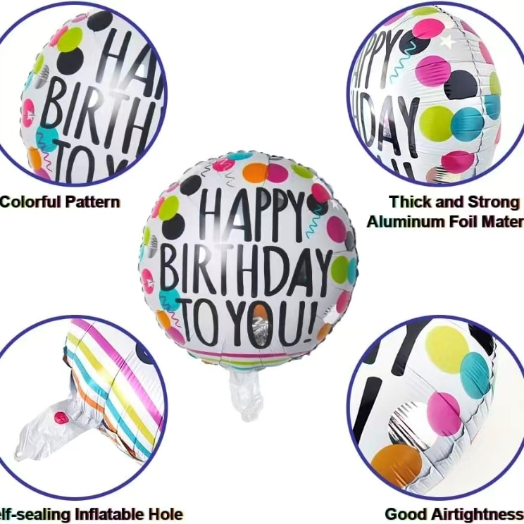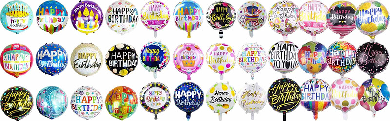- ผลิตจากกระดาษฟอยล์คุณภาพดี มีการปิดผนึกที่แข็งแกร่ง พวกมันเบาและให้ความรู้สึกคุณภาพสูง พื้นผิวใช้เทคโนโลยีการพิมพ์ที่ดี รูปแบบมีความชัดเจนและสดใส สีสันสดใสไม่ซีดจางง่าย คุณสามารถรับการออกแบบข้อความคลาสสิกได้ ซึ่งรวมถึง "สุขสันต์วันเกิด" ทั้งภาษาจีนและภาษาอังกฤษ นอกจากนี้ยังมีหลายสไตล์ด้วยตัวการ์ตูนและหมายเลขอายุ เหมาะกับงานวันเกิดสำหรับกลุ่มอายุต่างๆ ซึ่งครอบคลุมตั้งแต่เด็กไปจนถึงผู้ใหญ่