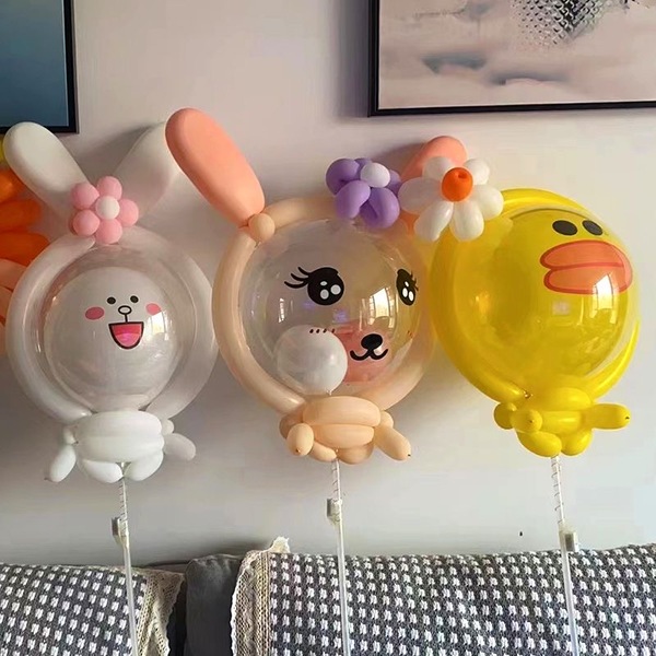 สำหรับผู้เริ่มต้น กระบวนการประกอบยังง่ายกว่าเมื่อเทียบกับรูปแบบอื่นๆ ซึ่งหมายความว่าคุณสามารถใช้เวลาน้อยลงในการได้รับผลกำไรมากขึ้นลูกโป่งโบโบ้กับกระต่ายของเล่นทำจากบอลลูน Bobo ขนาด 24 นิ้ว ภายในนั้นคุณไม่เพียงแต่มองเห็นกระต่ายของเล่นเท่านั้น แต่ยังมีลูกปามันวาวอีกด้วย หลังจากบรรจุแล้ว คุณสามารถขยายบอลลูนด้วยอากาศหรือฮีเลียมตามเอฟเฟกต์ที่ต้องการที่คุณต้องการ หากเติมฮีเลียม ลูกปาภายในบอลลูนสามารถลอยไปรอบ ๆ กระต่ายของเล่น สร้างเอฟเฟกต์ที่น่าดึงดูดมาก ใส่สติกเกอร์บางตัวบนบอลลูน Bobo สามารถทำให้ดูหรูหรายิ่งขึ้น เช่น คำอวยพร หรือสติกเกอร์อิโมติคอน ฯลฯ หลังจากทำตามขั้นตอนทั้งหมดเสร็จแล้ว สามารถใช้ริบบิ้นผ้าไหมสีต่างๆ เพื่อยึดลูกโป่ง Bobo ไว้ในตำแหน่งที่มั่นคง