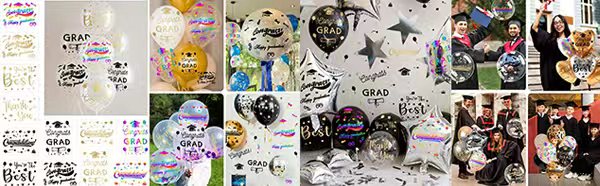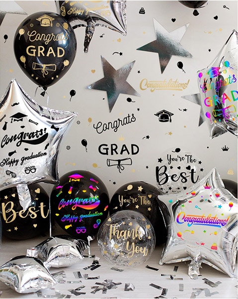 สติ๊กเกอร์บอลลูน "สุขสันต์รับปริญญา" ของเราออกแบบมาเพื่อเพิ่มบรรยากาศสนุกสนานในงานปาร์ตี้รับปริญญา สติกเกอร์แต่ละชิ้นมีวลีหรือดีไซน์เฉลิมฉลองที่สะท้อนถึงจิตวิญญาณแห่งความสำเร็จ ใช้สติกเกอร์เหล่านี้เพื่อสร้างการตกแต่งที่เป็นเอกลักษณ์และถ่ายภาพที่น่าจดจำและช่วงเวลาสำคัญกับครอบครัวและเพื่อนฝูง
