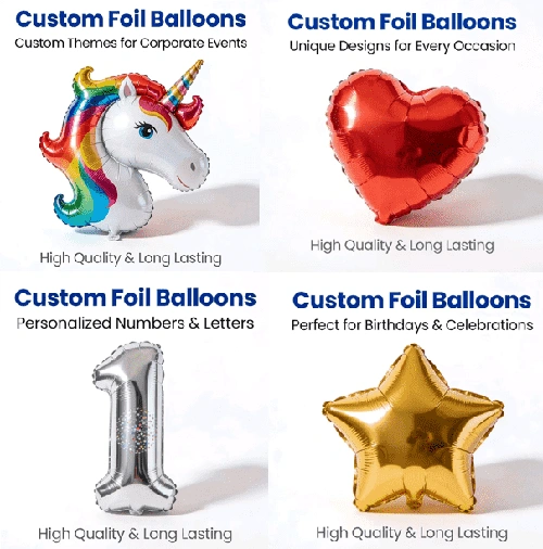 ลูกโป่งฟอยล์สั่งทำพิเศษ สามารถปรับแต่งได้ตามขนาดทั่วไป ได้แก่ 5, 10, 18, 24 และ 36 นิ้ว รูปร่างและขนาดที่ผิดปกติพิเศษสามารถปรับแต่งได้ตามความต้องการ