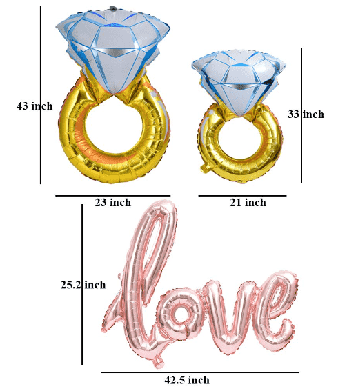 ชุดลูกโป่งฟอยล์แหวนหมั้นบรรจุในถุงแบบเปิด พร้อมคำแนะนำโดยละเอียดและชุดเครื่องมือครบชุด