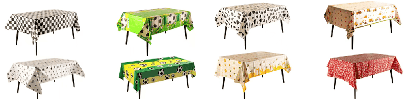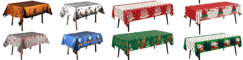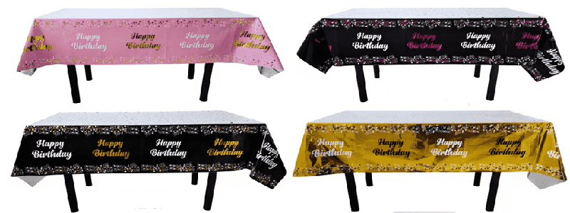 สีรุ้ง ผ้าปูโต๊ะฟอยล์รูปสัตว์การ์ตูนและลายเค้ก เหมาะสำหรับงานวันเกิดเด็ก ทอง เงิน เลเซอร์สีพร้อมดาวและรูปแบบตัวอักษร เหมาะสำหรับงานวันเกิดผู้ใหญ่ ฉลองครบรอบ ปาร์ตี้แฟน ฯลฯ สามารถจัดในโต๊ะรับประทานอาหารของครอบครัว โต๊ะปาร์ตี้ในโรงแรม โต๊ะปิกนิกกลางแจ้ง และฉากอื่น ๆ