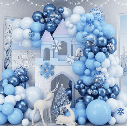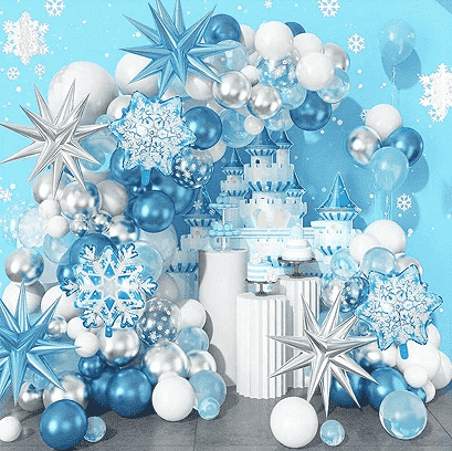 3.ชุดพวงมาลัยบอลลูนแช่แข็งมักจะมีขนาดต่างๆลูกโป่งแช่แข็ง, ลูกโป่งฟอยล์ที่มีเอกลักษณ์เฉพาะตัว, ริบบิ้นตกแต่งที่เข้ากัน, ที่สูบลม, จุดกาวที่ไม่มีเครื่องหมาย, สายรัดในการติดตั้ง และอุปกรณ์เสริมอื่น ๆ เพื่อให้ตรงตามข้อกำหนดเค้าโครงในที่เดียว ส่วนประกอบทั้งหมดทำจากวัสดุที่ปลอดภัยและเป็นมิตรกับสิ่งแวดล้อม ปรับให้เข้ากับฉากกิจกรรมของเด็กได้อย่างเต็มที่ รูปแบบบอลลูนในชุดสูทได้รับการจับคู่อย่างลงตัว โดยผสมผสานภาพลักษณ์คลาสสิกของตัวละคร Frozen เข้ากับองค์ประกอบน้ำแข็งและหิมะชวนฝัน สีฟ้า สีขาว และสีเงิน สร้างบรรยากาศมหัศจรรย์อันบริสุทธิ์และโรแมนติก