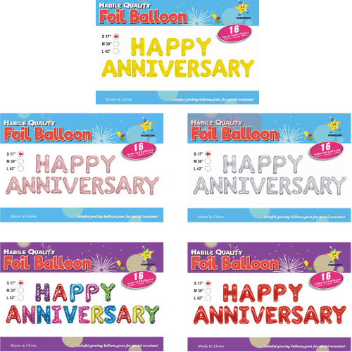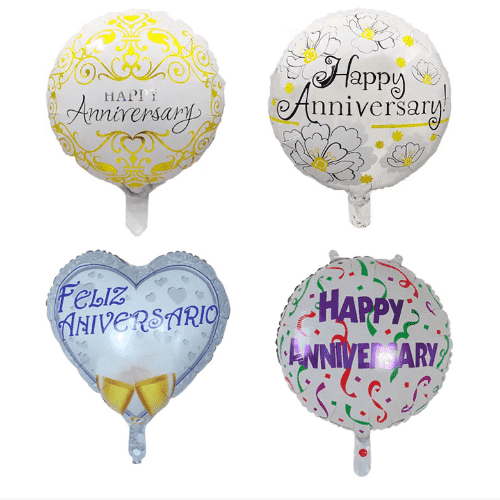 สำหรับลูกโป่งฟอยล์สุขสันต์วันครบรอบ 16 นิ้วสำหรับตกแต่ง 32 นิ้วสำหรับพื้นหลังหลัก และ 40 นิ้วสำหรับงานปาร์ตี้ขนาดใหญ่