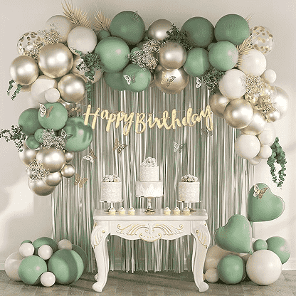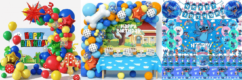 - ชุดตกแต่งลูกโป่งสุขสันต์วันเกิดสไตล์นี้ผสมผสานลูกโป่งยาง ลูกโป่งฟอยล์พร้อมฉากหลังและผ้าปูโต๊ะเพื่อสร้างฉากปาร์ตี้วันเกิดที่ดื่มด่ำผ่านการผสมผสานสี ฉากหลังและผ้าปูโต๊ะสามารถปรับแต่งได้ตามขนาดของฉาก และสามารถปรับแต่งสไตล์และลวดลายตามธีมปาร์ตี้และระบบสีได้