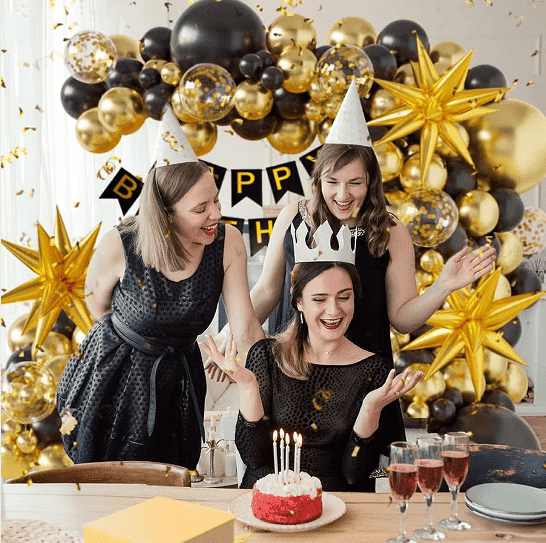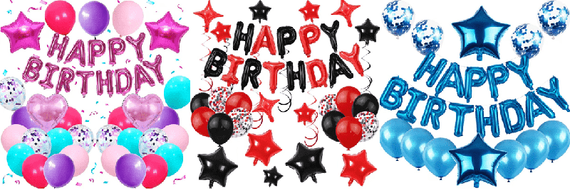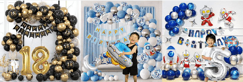 - รูปแบบพื้นฐานคือลูกโป่งยาง Happy Birthday ที่มีสีเดียวกันหรือสีคู่กันด้วยลูกโป่งฟอยล์จดหมายสุขสันต์วันเกิดหรือลูกโป่งฟอยล์ตัวเลข- สไตล์คลาสสิกมีลูกโป่งเจลแป้งมาการองสีชมพู ลูกโป่งฟอยล์ Happy Birthday ลูกโป่งยางสีดำ ลูกโป่งฟอยล์ตัวเลขสีทอง ลูกโป่งลาเท็กซ์สามารถร้อยเป็นโซ่บอลลูนแล้วแขวนไว้บนผนังหรือเพดาน โดยมีลูกโป่งฟอยล์เป็นศูนย์กลางการมองเห็นและการประดับด้วยริบบิ้นจำนวนเล็กน้อยเพื่อสร้างบรรยากาศปาร์ตี้ที่เรียบง่ายและมีพื้นผิวได้อย่างรวดเร็ว
