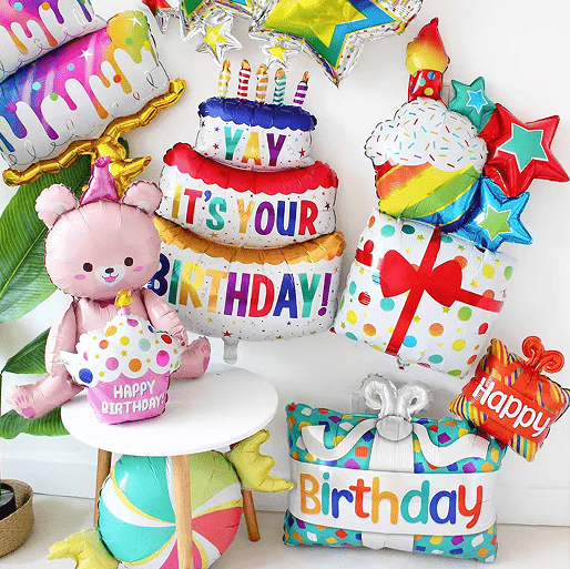 - ลูกโป่งฟอยล์สุขสันต์วันเกิดมีผลกระทบต่อภาพที่แข็งแกร่งและความรู้สึกในระดับสูง ผลิตภัณฑ์ทำจากวัสดุฟอยล์อลูมิเนียมมันวาวสูง พื้นผิวนำเสนอพื้นผิวโลหะ ผลสะท้อนแสงที่ดี ส่องแสงภายใต้แสง สามารถกลายเป็นจุดสำคัญของงานปาร์ตี้ได้ รุ่นคลาสสิกมีทั้งลูกโป่งตัวอักษร Happy Birthday และลูกโป่งตัวเลข Happy Birthday ครบชุด เช่น "18", "30" และ "60" แบบจำลองประกอบด้วยเค้ก ความรัก ดวงดาว ตัวการ์ตูน สัตว์ ฯลฯ ซึ่งเหมาะสำหรับความต้องการธีมที่แตกต่างกันของเด็กและผู้ใหญ่