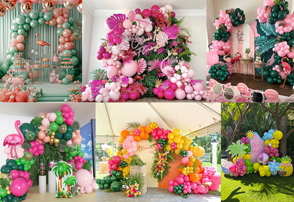 เราสามารถปรับแต่งให้เข้ากับธีมของคุณได้ โดยเลือกชุดสีที่เป็นเอกลักษณ์ของคุณเอง ตัวอย่างเช่น การเพิ่มลูกโป่งธีมย้อนยุคจะสร้างบรรยากาศเขตร้อนและรื่นเริงให้กับสถานที่ของคุณ โดยเพิ่มความเย้ายวนใจให้กับชุดพวงมาลัยบอลลูนฮาวายของคุณ