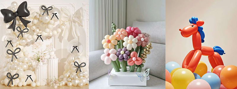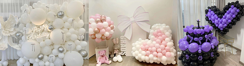 ขนาดที่แตกต่างกันสามารถใช้ร่วมกันได้ ลูกโป่งขนาดเล็กสามารถใช้เป็นรายละเอียดการตกแต่ง ลูกโป่งขนาดใหญ่สามารถใช้สำหรับบอลลูนซุ้มประตูหรือพวงมาลัยบอลลูน เอฟเฟกต์ดูโดดเด่น เมื่อใช้กับลูกโป่ง bobo ลูกโป่งสีเมทัลลิกหรือลูกโป่งฟอยล์ลุคมีชั้นมากขึ้น สไตล์กลายเป็นความสมบูรณ์ยิ่งขึ้น การใช้งานกว้างมาก มันสามารถใช้ในงานแต่งงาน มันสามารถใช้ในงานวันเกิด นอกจากนี้ยังสามารถใช้ในกิจกรรมวันหยุด มันทำงานเป็นของตกแต่งหลักหรือการตกแต่งรายละเอียด