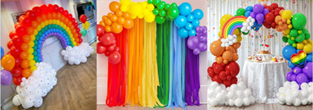 ชุดพวงมาลัยบอลลูนสีรุ้งของเราเหมาะสำหรับงานปาร์ตี้ใดๆ ไม่ว่าจะเป็นวันเกิด งานรับขวัญเด็ก ปาร์ตี้สายรุ้ง หรือปาร์ตี้ธีมยูนิคอร์น แขวนลูกโป่งสีพาสเทลสีรุ้งเหล่านี้จากชุดสายรุ้งหรือบล็อกสี หรือรวมเข้าด้วยกันเพื่อสร้างพวงมาลัยสีรุ้งหลากสีสัน