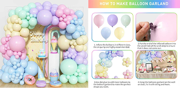 ชุดพวงมาลัยโค้งลูกโป่งสายรุ้งที่ใช้งานง่ายในปัจจุบันของเรามาพร้อมกับการ์ดคำแนะนำตามคำขอ ช่วยให้คุณสร้างของตกแต่งต่างๆ ได้อย่างง่ายดายโดยไม่ต้องเสียเวลาในการประกอบมากนัก สิ่งนี้ช่วยให้คุณได้สัมผัสกับความสนุกของ DIY พร้อมประหยัดเวลาอันมีค่า เราขอแนะนำให้ใช้ปั๊มไฟฟ้าเพื่อการประกอบที่มีประสิทธิภาพยิ่งขึ้น!