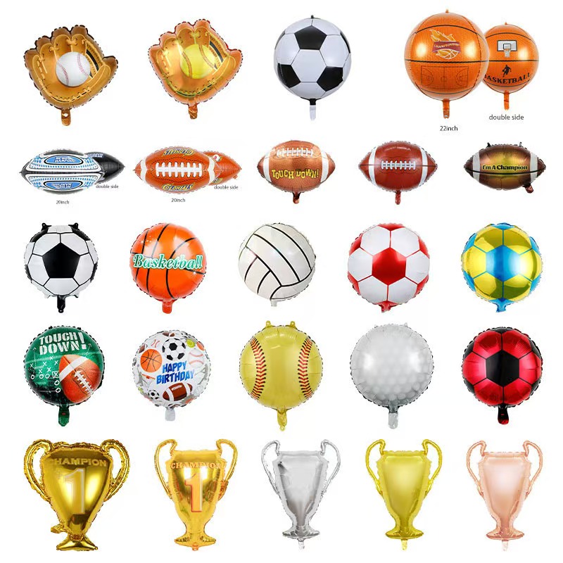 ลูกโป่งฟอยล์ธีมกีฬาทำจากฟอยล์อลูมิเนียมโลหะคุณภาพสูง พื้นผิวมีความสดใสและเป็นมันเงาเหมือนพื้นผิวของอุปกรณ์กีฬา หลังจากอัตราเงินเฟ้อ มันมีความรู้สึกสามมิติที่แข็งแกร่ง เวลากักเก็บอากาศนาน และไม่ง่ายที่จะเกิดความเสียหาย