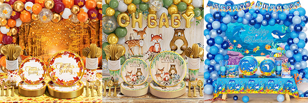 ฝ่ายต่างๆใช้งานหลักสำหรับโต๊ะกระดาษNIUN® การจับคู่กับชุดของพวงมาลัยบอลลูนที่มีธีมสามารถปรับปรุงธีมได้ พวงมาลัยบอลลูนแต่ละตัวมีธีมที่สอดคล้องกันและมีสีที่หลากหลายเพื่อประสานงานอย่างสมบูรณ์แบบกับชุดโต๊ะอาหารปาร์ตี้กระดาษที่แตกต่างกัน การจับคู่โต๊ะอาหารกระดาษกับรูปแบบพวงมาลัยบอลลูนที่มีธีมที่สอดคล้องกันจะสร้างปาร์ตี้พราว!
