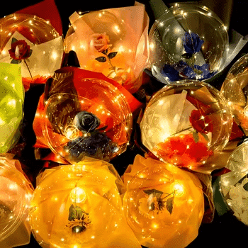 ลูกโป่งโบโบดอกกุหลาบเป็นผลิตภัณฑ์สร้างสรรค์ที่ผสมผสานดอกกุหลาบเข้ากับลูกโป่งโบโบ้ ดอกกุหลาบจะได้รับการปฏิบัติ เช่น นวดให้ฟูและเต็ม ใส่ลงในลูกโป่งใส จากนั้นจึงขยายลูกโป่งโบโบ หลังจากนั้นเสาดอกไม้และปากลูกบอลจะถูกยึดด้วยเทปกาว และติดตั้งที่ยึดลูกบอลที่มีเส้นแสง เส้นแสงยังมีโหมดแสงที่หลากหลาย นอกจากนี้ลูกบอลจะตกแต่งด้วยลูกโป่งยาว เส้นด้ายนางฟ้า ริบบิ้น ฯลฯ เพื่อให้ดูสวยงามและละเอียดอ่อนยิ่งขึ้น ส่วนใหญ่ใช้สำหรับการตกแต่งวันวาเลนไทน์ วันเกิด การแต่งงาน และโอกาสโรแมนติกอื่น ๆ นอกจากนี้ยังสามารถให้เป็นของขวัญได้