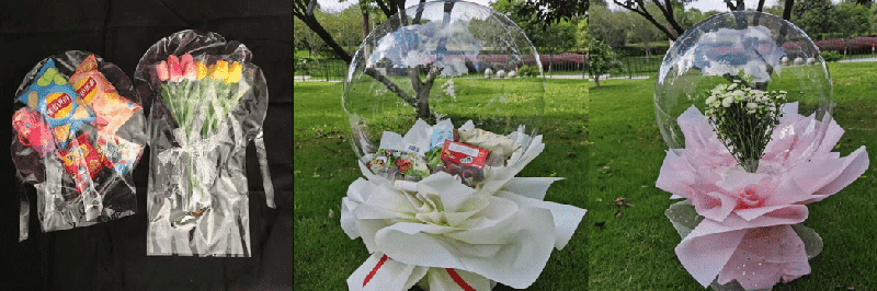 ลูกโป่งสแน็คโบโบ้ผสมผสานบอลลูนโบโบ้ปากคู่ TPU ใสเข้ากับของขบเคี้ยวต่างๆ ซึ่งทั้งสวยงามและใช้งานได้จริง ทรงกลมใสมองเห็นขนมข้างในได้ชัดเจน รูปร่างโดยรวมมีความสวยงามและมีสีสันมากมาย การออกแบบสองพอร์ตช่วยให้พองและบรรจุขนมได้สะดวกและรวดเร็วยิ่งขึ้น การปิดผนึกสองพอร์ตสามารถรับประกันความหนาแน่นของอากาศของบอลลูนได้ดีขึ้น ทำให้บอลลูนเต็มและคงทน และเพิ่มเวลาในการดูช่อดอกไม้