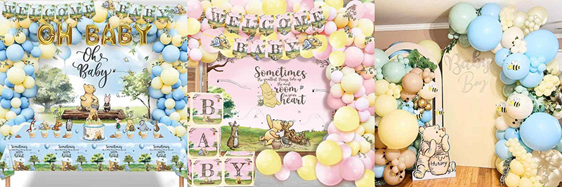 สไตล์นี้เน้นไปที่ IP ของ Winnie the Pooh แบบคลาสสิก มันรวมภาพเพื่อนน่ารักมากมาย เพื่อนเหล่านี้ ได้แก่ ทิกเกอร์และพิกเล็ต เข้าคู่กับลูกโป่งมาการองสีสด สีต่างๆ ได้แก่ ฟ้าอ่อน ชมพู เหลือง เขียว และอื่นๆ เหมาะสำหรับงานปาร์ตี้ของเด็กทารกชาย นอกจากนี้ยังเหมาะสำหรับงานปาร์ตี้ของเด็กผู้หญิงอีกด้วย คุณสามารถค้นหาสไตล์สีที่ลงตัวได้ ตัวอย่างเช่น ซีรีส์สีน้ำเงินแสดงให้เห็นถึงความมีชีวิตชีวาของเด็กผู้ชาย ซีรีส์สีชมพูเต็มไปด้วยความหวานและความน่ารักของสาวๆ