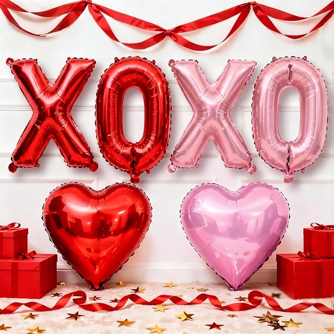 ชุดโรแมนติกวันวาเลนไทน์: เน้นลูกโป่งฟอยล์ "XOXO" จับคู่กับลูกโป่งรูปหัวใจ ลูกโป่งลาเท็กซ์ประดับเลื่อม ตกแต่งด้วยริบบิ้นและจุดกาว การออกแบบโดยรวมเต็มไปด้วยลมหายใจที่หอมหวาน งานแต่งงานที่ลงตัว การแต่งงาน คำสารภาพ และฉากโรแมนติกอื่นๆ ที่แม่นยำเพื่อตอบสนองความต้องการของผู้บริโภคของคู่รัก